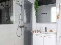 . Varustus: lattialämmitys, suihku, peilikaappi. Erillisen WC:n kuvaus: 2 erillis-wc:tä. Toinen wc uusittu 2018, toinen wc alkuperäinen, wc-istuin uusittu 2021. Toisessa peilikaappi, toisessa peili.