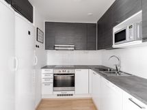 - Varusteet: jääkaappi, pakastin, astianpesukone. Työtaso: laminaattitaso. Liesi: keraaminen liesi, erillisuuni, liesikupu