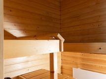 - Mukavan kokoinen sauna, jonka panelointi ja lauteet hyvässä kunnossa.
