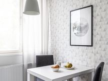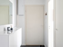 Seinät tapetoitu, välitilassa laatta. Lattia laminaattia.