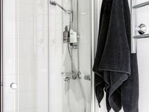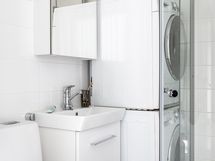 - Pesutilojen kuvaus: Suihku, wc, peilikaappi ja pesukoneliitäntä.