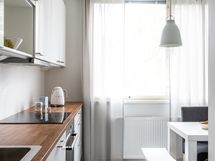 - Jääkaappipakastin, induktioliesi, uuni, liesituuletin ja astianpesukone.