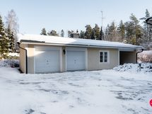 The house's sauna offers moments of relaxation, and the practicality of the utility room makes everyday chores easier. The garage building has space for two cars, a technical room and a study, which is also perfect as a guest room.