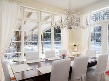This magnificent, classically continental detached house in Soukanniemi, Espoo offers space and comfort for even the most demanding family. The house is located on its own 3,744 m² plot, which has been designed in a manor-like style. A large lawned courtyard, planting areas, a greenhouse and a barbecue area offer plenty of opportunities for hobbies and relaxation.