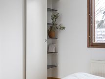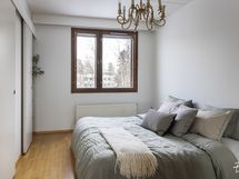Kaksi makuuhuonetta tarjoavat joustavuutta - tilaa vieraille, työskentelyyn tai harrastuksille. Erillinen wc, kylpyhuone sekä vaatehuone tuovat arkeen käytännöllisyyttä. Kaikki seinäpinnat ja olohuoneen katto on maalattu vuonna 2025, joten yleisilme on raikas ja huoliteltu.