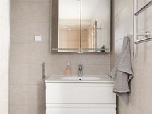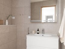 - Varustus: suihkuseinä, lattialämmitys, wc-istuin, suihku, peilikaappi, kylpyhuonekaapisto, asennettuja erikoisvarusteita. Varustus: lattialämmitys.