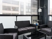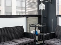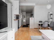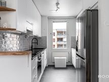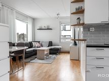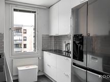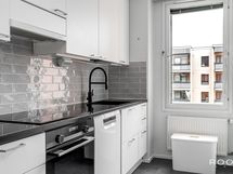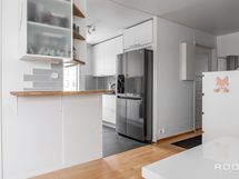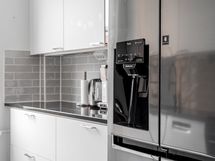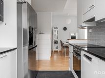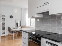 - Keittiön varusteet: Jenkkikaappi, erillisuuni, liesi, mikroaaltouuni ja astianpesukone. Liesi: Induktioliesi. Työtason materiaali: Kivi.