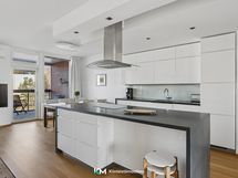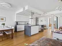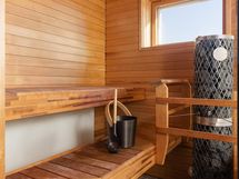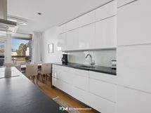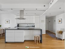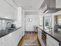 - Tyylikäs Kvik-Mano keittiö. Jääkaappi/pakastin, uuni/mikroaaltouuni, liesituuletin/suodatin, astianpesukone, Durat-työtasot (myös saarekkeessa), keraaminen liesi