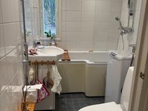 - Suihku, Kylpyamme, Allaskaappi, Laattaseinä, Laattalattia, Avattava ikkuna, Lattialämmitys