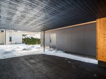 Arjen toimivuutta lisäävät tilava kodinhoitohuone, oma saunaosasto sekä käytännöllinen säilytystila. Pihapiiristä löytyy myös suuri autokatos, joka tarjoaa sujuvat puitteet autoiluun.