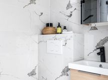 - Pesutilojen kuvaus: Amme, peilikaappi, käsienpesuallas