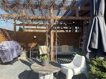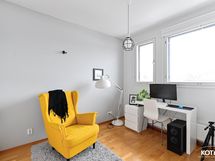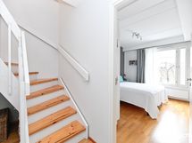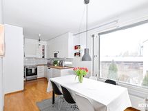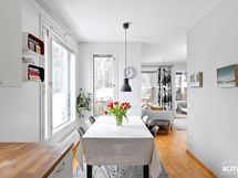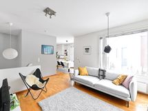 - Ikkunoita kolmeen suuntaan. Alakerran huoneista sekä yläkerran makuuhuoneesta näkymät asunnon pihan suuntaan, noin kaakkoon, ruokailutilasta näkymät noin lounaaseen ja olohuoneesta terassin suuntaan, noin länteen.