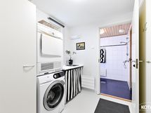 - Pesutilojen varusteet: Lattialämmitys. Pesutilojen kuvaus: Alakerrassa: Kaksi suihkua, lattialämmitys, sauna.