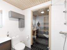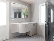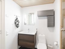 - Alakerran kylpyhuoneessa sauna, wc, suihku, allaskaappi, peili, seinään kiinnitetyt kaapit, lattialämmitys.