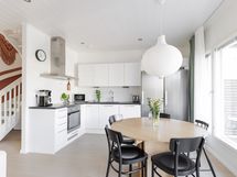 - Erilliset täyskorkeat jääkaappi ja pakastin, laminaattitasot, astianpesukone, induktioliesi, erillisuuni, liesituuletin.