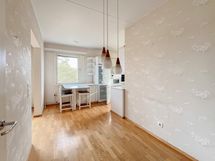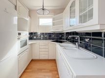 - Astianpesukone, astianpesukoneliitäntä, jääkaappi-pakastin, keraaminen liesitaso, kiertoilmauuni, liesituuletin. Pintamateriaalit/ lattia: Parketti. Pintamateriaalit/ seinä: Kaakeli, maalattu, tapetti. Materiaalit/ työtasot: Laminaatti. Keittiötilat: Keittiö