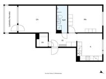 - Läpihuoneisto kaakko–luode -suunnassa. Olohuone ja parveke kaakkoon, keittiö ja makuuhuone luoteeseen.