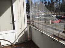 - Lasitettu ja tilava parveke tarjoaa mukavan lisätilan oleskeluun keväästä pitkälle syksyyn. Parvekkeelle mahtuu hyvin pöytä ja tuolit.