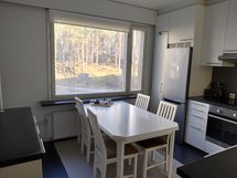 - Keittiö on uusittu kokonaisuudessaan linjasaneerauksen yhteydessä 2018–2019. Varustukseen kuuluvat integroitu induktioliesitaso ja erillisuuni, astianpesukone sekä jääkaappipakastin. Kaapistoja ja työskentelytilaa on runsaasti, ja keittiöön mahtuu hyvin ruokapöytä.