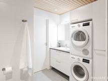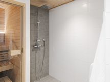 - Varusteet: suihku, peilikaappi, allaskaappi, pesukoneliitäntä, WC, lattialämmitys