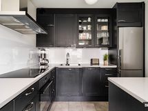- Jääkaappipakastin, Liesituuletin, Liesi (Induktioliesi), Uuni (Kiertoilmauuni), Astianpesukone