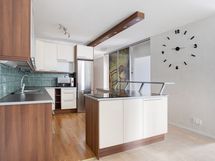 - Vaaleat kaapistot. Saarekkeessa runsaasti laskutilaa. Erillisliesitaso (induktio) uusittu 2023 ja uuni. Astianpesukone. Jääkaappi-/pakastinyhdistelmä. Ruikailutilaan mahtuu suurikin pöytäryhmä. Ruokailutilaan asennettu ilmalämpöpumppu kuuluu kauppaan.