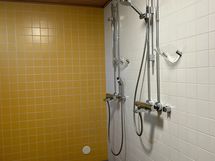 - Pesutilojen kuvaus: Kylpyhuone uusittu putkiremontin yhteydessä. Vesikiertoinen lattialämmitys. Lattia ja seinät laatoitetut. Suihku ja lasiset taittuvat suihkuseinät. Peili- ja allaskaapisto. Wc-istuin. Pesukoneliitäntä.