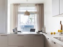 - Liesi: integroitu, erillisuuni. Työtasot: laminaatti. Kylmäsäilytys: jääkaappi, pakastin. Varustus: liesituuletin / hormi.