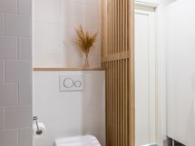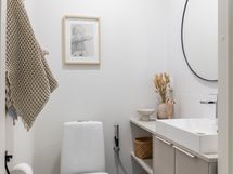 - Pesutilojen varusteet: WC-istuin ja suihku (Sadesuihku). Erillisten WC:n lukumäärä: 1. Erillisen WC:n varusteet: WC-istuin, peili, pesuallas, allaskaappi, bidee-suihku, lattiakaivo ja lattialämmitys.