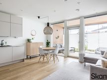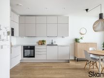 - Keittiön varusteet: Jääkaappipakastin (Integroitu), liesi (Tasoliesi), liesituuletin (Aktiivihiili), mikroaaltouuni (Integroitu), erillisuuni (Integroitu) ja astianpesukone (Integroitu). Liesi: Induktioliesi. Työtason materiaali: Laminaatti. Puustellin kattavasti varustettu keittiö.