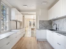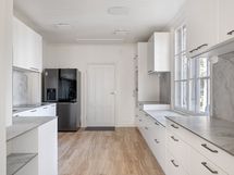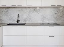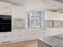 - Keittiön varusteet: Astianpesukone, uuni, mikroaaltouuni, side-by-side jääkaappi-pakastin jääpalakoneella ja liesi. Liesi: Induktioliesi integroidulla tasotuulettimella. Työtason materiaali: Keraaminen. Vaalea ja linjakas Novartin keittiö, jossa runsaasti säilytys- ja tasotilaa. Siemensin laadukkaat kodinkoneet. Keittiö uusittu 2025.