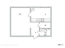 - Varustus: suihkuseinä, pesukoneliitäntä, wc-istuin, suihku, peili.