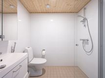 Pesutilojen varusteet: WC-istuin, suihku, lattialämmitys, bidee-suihku, allaskaappi, pesuallas ja suihkuseinä. Erillisten WC:n lukumäärä: 1. Erillisen WC:n varusteet: WC-istuin, suihku, suihkuseinä, lattialämmitys, bidee-suihku, allaskaappi ja pesuallas.