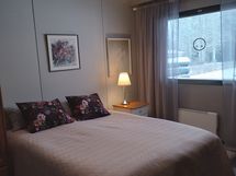 Keittiö: Laminaatti, maalattu, Olohuone: Laminaatti, tapetti, Makuuhuone: Laminaatti, maalattu, Kylpyhuone: Laatta, Sauna: Paneeli