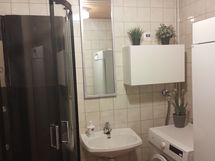 Suihkukaappi, Pesukonevalmius, Kuivauskaappi, Laattaseinä, Allaskaappi, Lattialämmitys, Erillinen WC