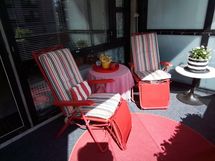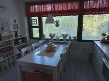 Ensimmäisen kerroksen valoisa asunto, jossa 2 mh, oh, keittiö, kylpyhuone ja wc. Lisäksi eteläänpäin 10 m2:n lasitettu parveke. Kylpyhuone korjattu täysin, samoin lattiat. Keittiössä uusittu keittiökalusteita ja astianpesukone. Taloyhtiössä häkkivarastot, polkupyörävarasto, varattava sauna, jossa uima-allas.