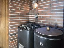 Pihasaunassa on myös mainio puulämmitteinen pata isompaan lämpimän veden tarpeeseen. Harmaat vedet menevät myös pihasaunasta omiin sakokaivoihin.
