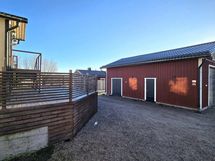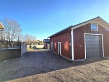 Erillisessä vuonna 2024 uudistetussa noin 70m² autotalli/verstashallirakennuksessa on voimavirtapistokkeita ja hallin nosto-oven korkeus on n. 3,10 m ja leveys on n. 3 m.