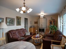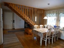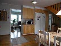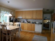 - Jääkaappi, pakastekaappi, lattialiesi, keraaminen liesi, liesituuletin, astianpesukone, kaapistot aito puupinta, kiinteät valaisimet, pöytätasojen materiaali puukuvioinen levy.
