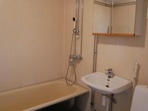 - Kylpyhuone, suihku, amme, peilikaappi, kiinteät valaisimet.