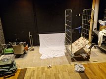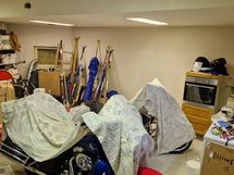 ramppi alas, isot ovet. Rakennettu varastokaappeja 16 kpl, mahdollisuus tehdä lisää. 2 nopeuksinen huippuimuri tilassa