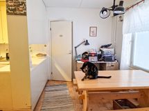 KEITTIÖ: Varustuksena jääkaappi, pakastin, sähköliesi/-uuni ja astianpesukone. Lattiassa parketti ja seinät maalattu. Keittiön jatkeena ruokailutila.