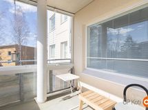 Lasitetulta parvekkeelta hyvät näkymät moneen suuntaan ja toimiikin lisähuoneena aina keväästä pitkälle syksyyn.