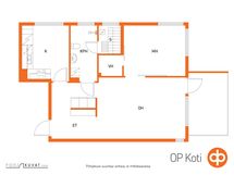 Keittiö: maalatut seinät, muovimatto. (parketti alla). Keittiössä puolikas ovi.. Olohuone: tapetti, parketti. Makuuhuone 1: tapetti, muovimatto. Sauna: Paneeli, laatta. Kylpyhuone: Laatta, laatta.