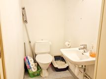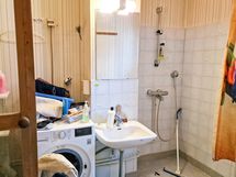 PESU / WC-TILAT: Lattiassa laatat ja seinissä kaakeli/muovitapetti. Pyykinpesukoneelle liitos. Erillinen wc, jossa laatta lattiassa ja seinät maalattu.