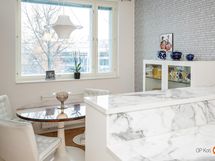 Tässä asunnossa kaikki on huolella suunniteltua ja viimeisteltyä. Tyylikäs ja toimiva keittiö yhdistyy saumattomasti avaraan olohuoneeseen ja ruokailutilaan - täydellinen paikka niin arkeen kuin juhlaan. Makuuhuoneet tarjoavat rauhallista tilaa rentoutumiseen, ja fiksusti käytetyt neliöt takaavat käytännöllisyyden ilman kompromisseja.