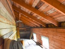 Lisätietoja säilytystiloista: Vintin poskissa on hyvin säilytystilaa. Yksi palkki on kostunut, kun oli katossa vuoto ja siitä kuva kuvissa. Lisäksi ulkovarasto.