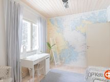 Pankkisalin jälkeen aukeaa keskikerroksen viimeinen makuuhuone. Tämä huone on uusittu täysin. Remontin yhteydessä on otettu vanhat purut pois ja laitettu tilalle ekovilla. Lisäksi seiniin on laitettu tuulensuojalevyt.