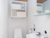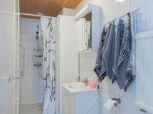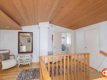 Yläkertaan pääsee kiipeämään wc:n ja suihkutilan vierestä. Sieltä löytyy tilava aula ja kaksi