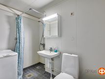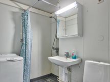 Kylpyhuone, suihku, pesukoneliitäntä, kiinteät valaisimet.